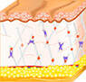 El diagrama a la derecha muestra lo que pasa en la piel cuando aumenta la producción de colágeno. El colágeno le da firmeza a la piel. Es una proteína natural que le da apoyo estructural a nuestro cuerpo. Conforme envejecemos, nuestros cuerpos producen menos colágeno. Vemos cómo la piel pierde brillo y juventud cuando las primeras arrugas aparecen. Al restaurar los niveles de colágeno en la piel, ayuda a reducir su apariencia envejecida y eliminamos las arrugas existentes.